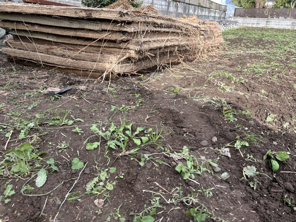 既存の畳は全て、ヘリとゴザを外してお客様の畑に運びました。